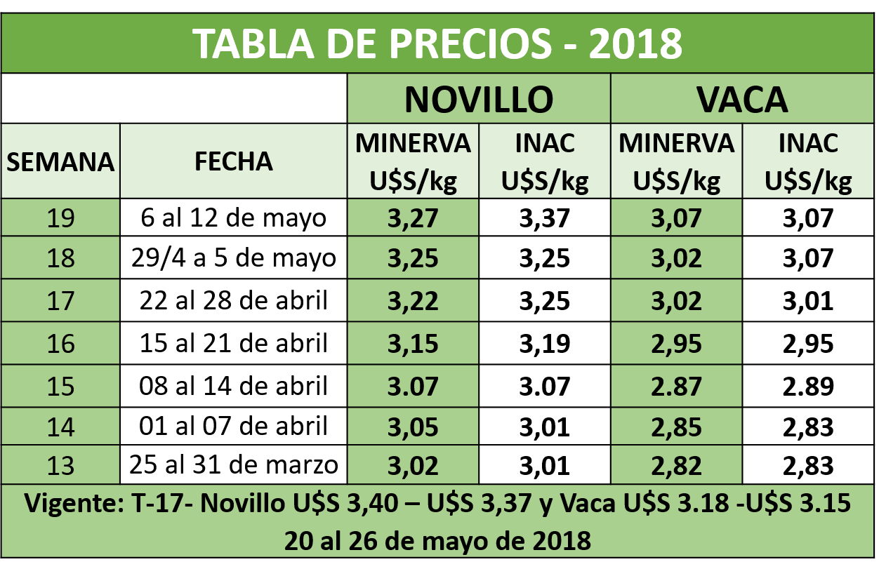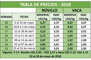 Por la presente le informamos los precios de la tabla de MINERVA Foods y los publicados por INAC.